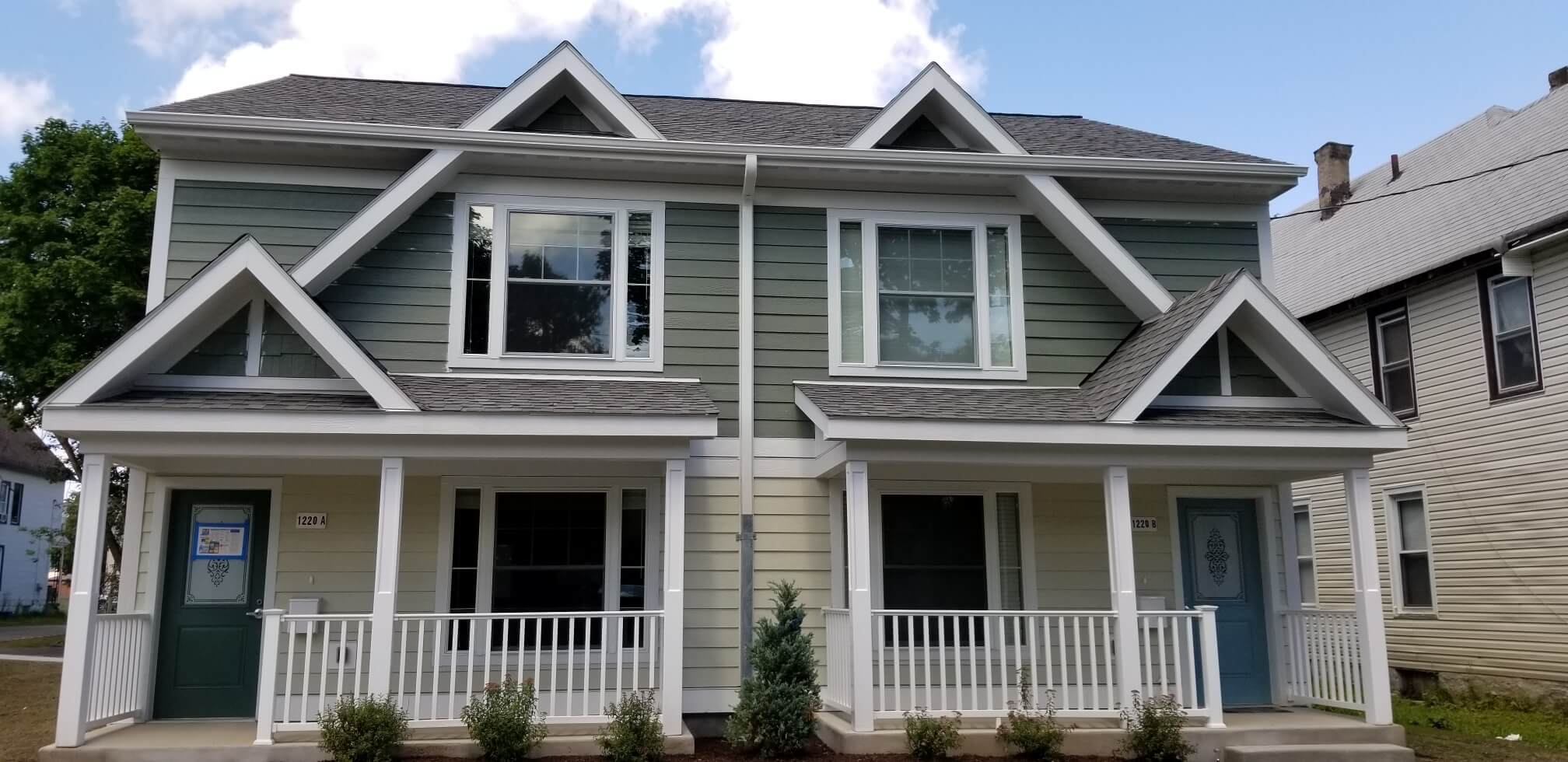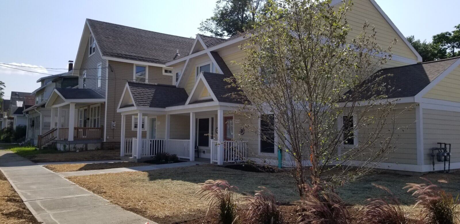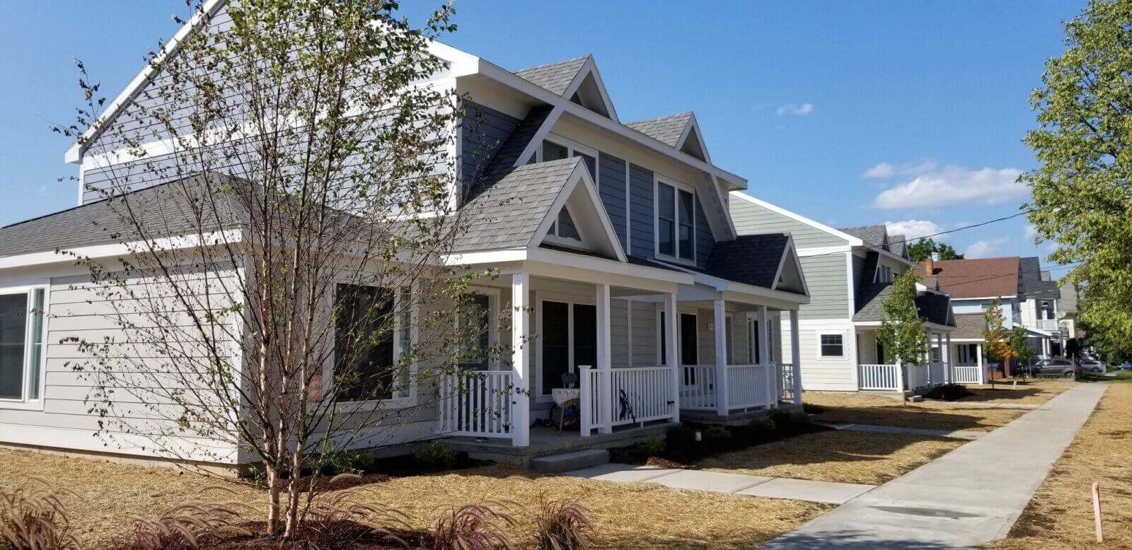 The Roosevelt Residences project created fifty units of affordable housing on vacant lots scattered throughout the Corn Hill neighborhood in Utica, New York. A variety of residential structures, primarily standalone traditional 2-family houses, were designed to reinforce and unify the architectural and social fabrics of the neighborhood. The multi-family residences contain a mix of one-, two-, three-, and four-bedroom units configured as either flats or two-story units. A number of each ground-floor unit type provide accessibility to individuals with physical impairments.