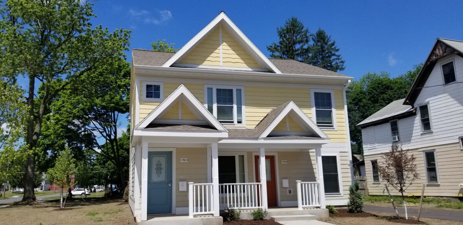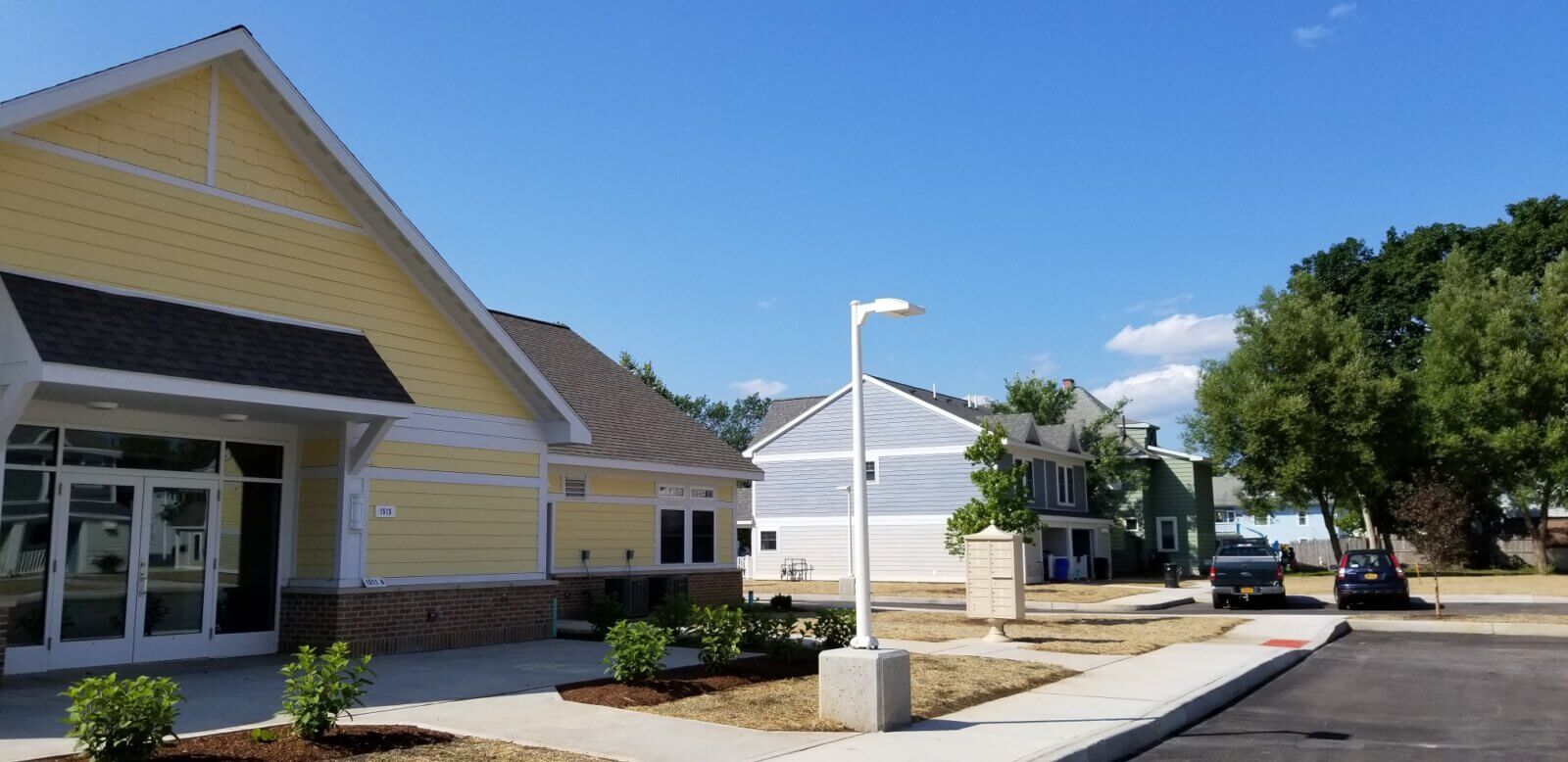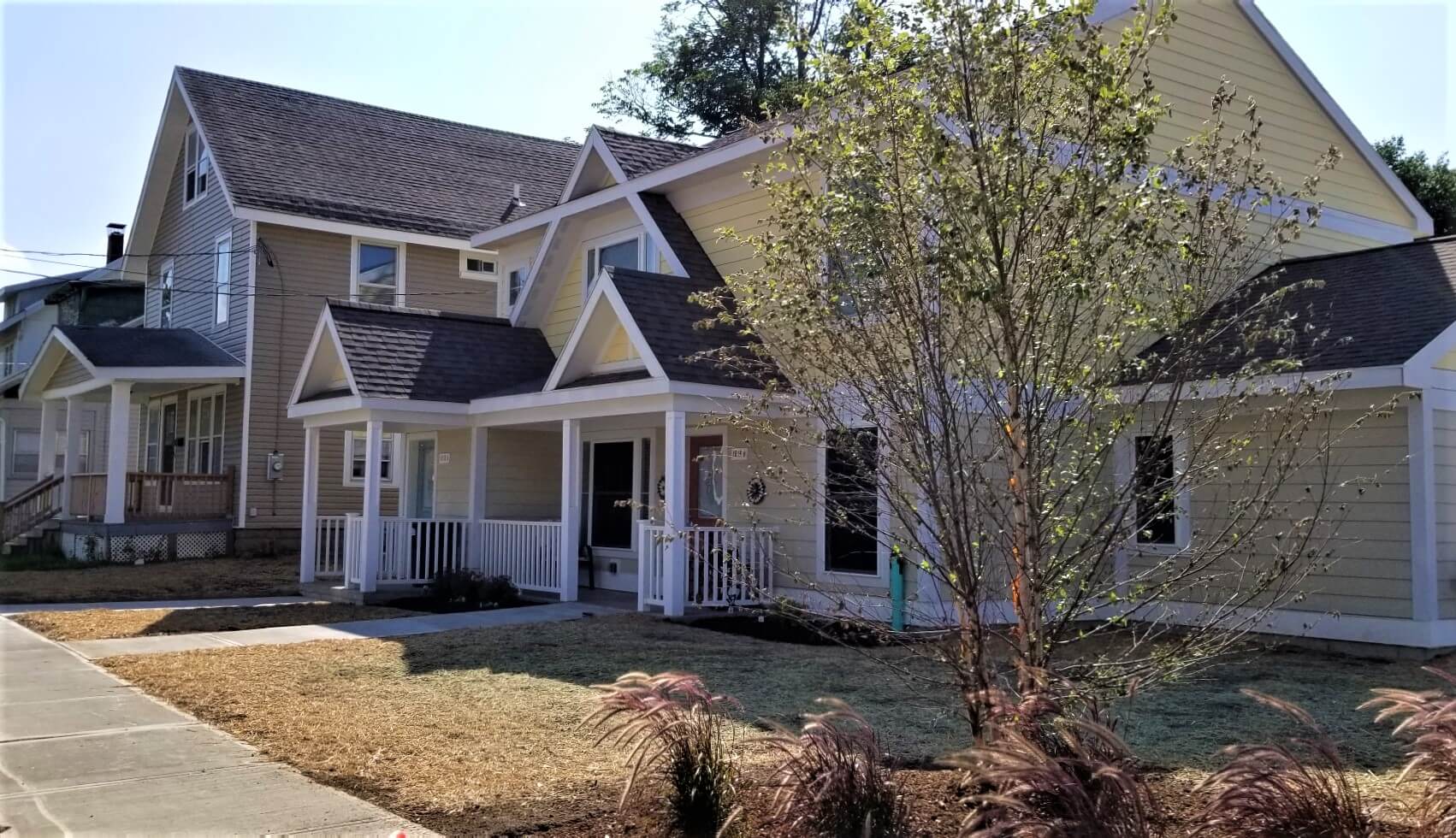 The Roosevelt Residences project created fifty units of affordable housing on vacant lots scattered throughout the Corn Hill neighborhood in Utica, New York. A variety of residential structures, primarily standalone traditional 2-family houses, were designed to reinforce and unify the architectural and social fabrics of the neighborhood. The multi-family residences contain a mix of one-, two-, three-, and four-bedroom units configured as either flats or two-story units. A number of each ground-floor unit type provide accessibility to individuals with physical impairments.